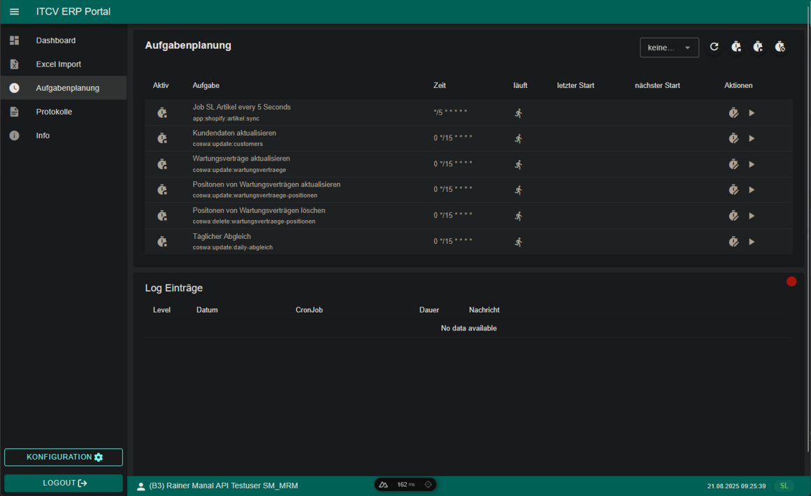 Das ERP-Portal bündelt wiederkehrende Aufgaben und zeitgesteuerte Prozesse in einer zentralen Oberfläche.